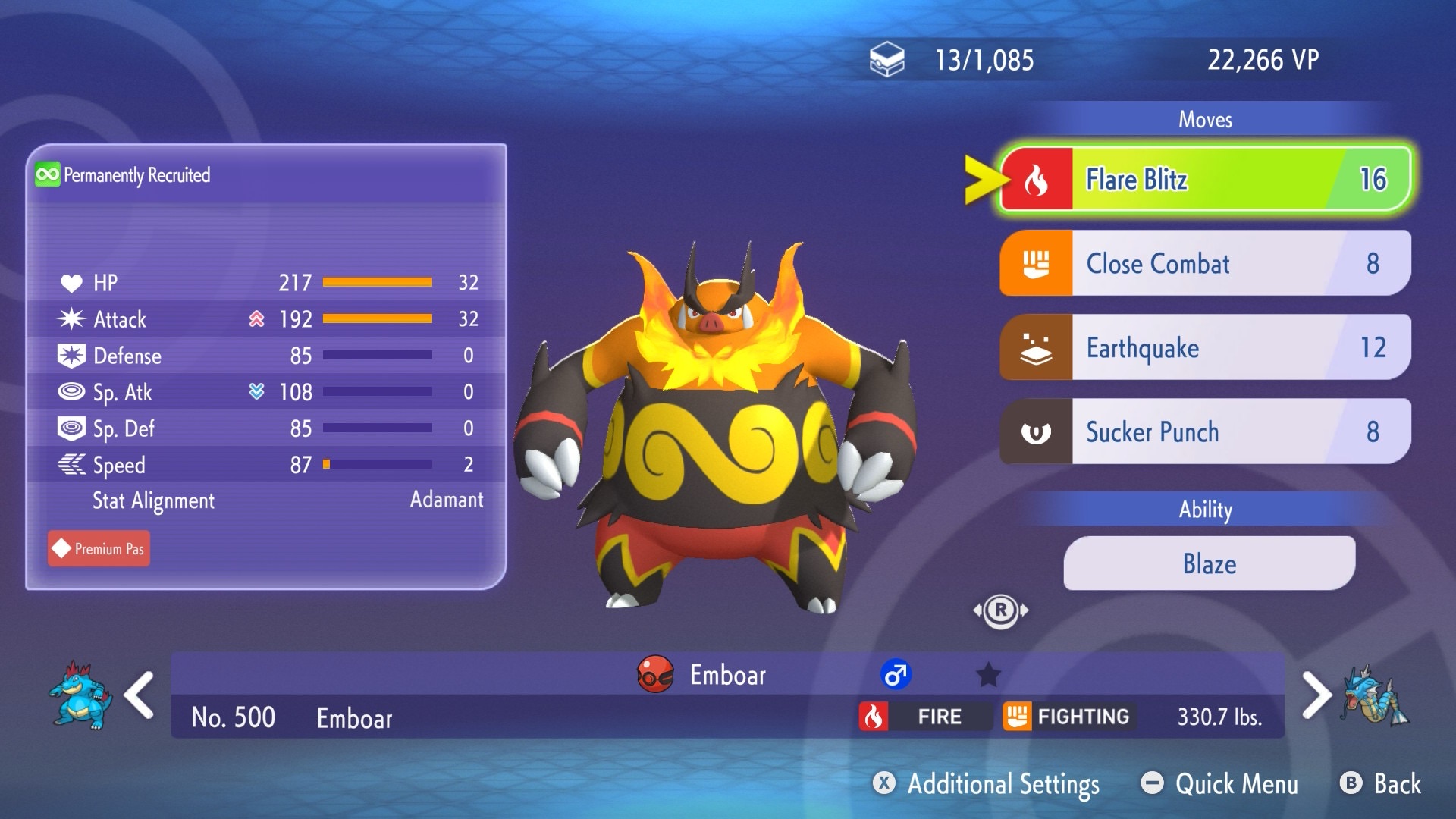 Emboar National Pokédex: #0500 Type: Fire / Fighting Category: Mega Fire Pig Pokémon | Level: N/A Original Trainer: N/A |…