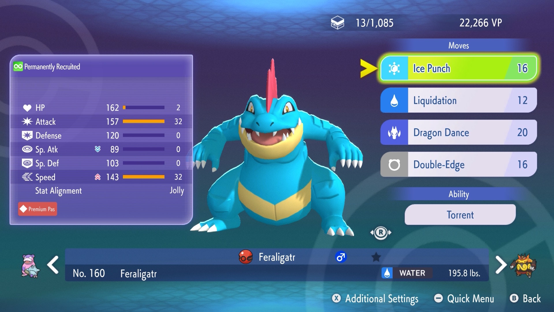 Feraligatr National Pokédex: #0160 Type: Water Category: Big Jaw Pokémon | Level: N/A Original Trainer: N/A | ID No: N/A…