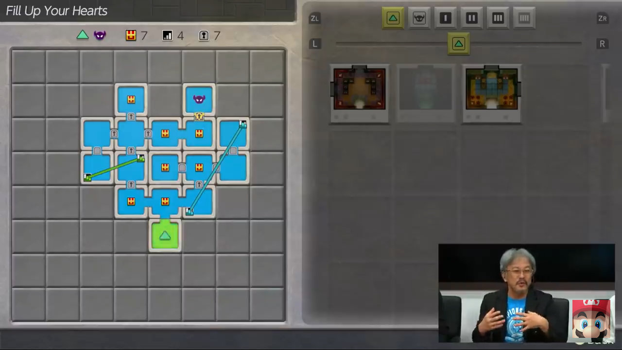 Thanks to the Nintendo Treehouse team providing live coverage of the Chamber Dungeon, we got to have a better look and understanding of how the mode works. Joined by Zelda Producer Eiji Aonuma, the Nintendo Treehouse team showed many features and how players can swap between different chambers and linking stairways to one another. They also revealed the Link’s Awakening amiibo functionality in the game as well, which we will explain in our breakdown.