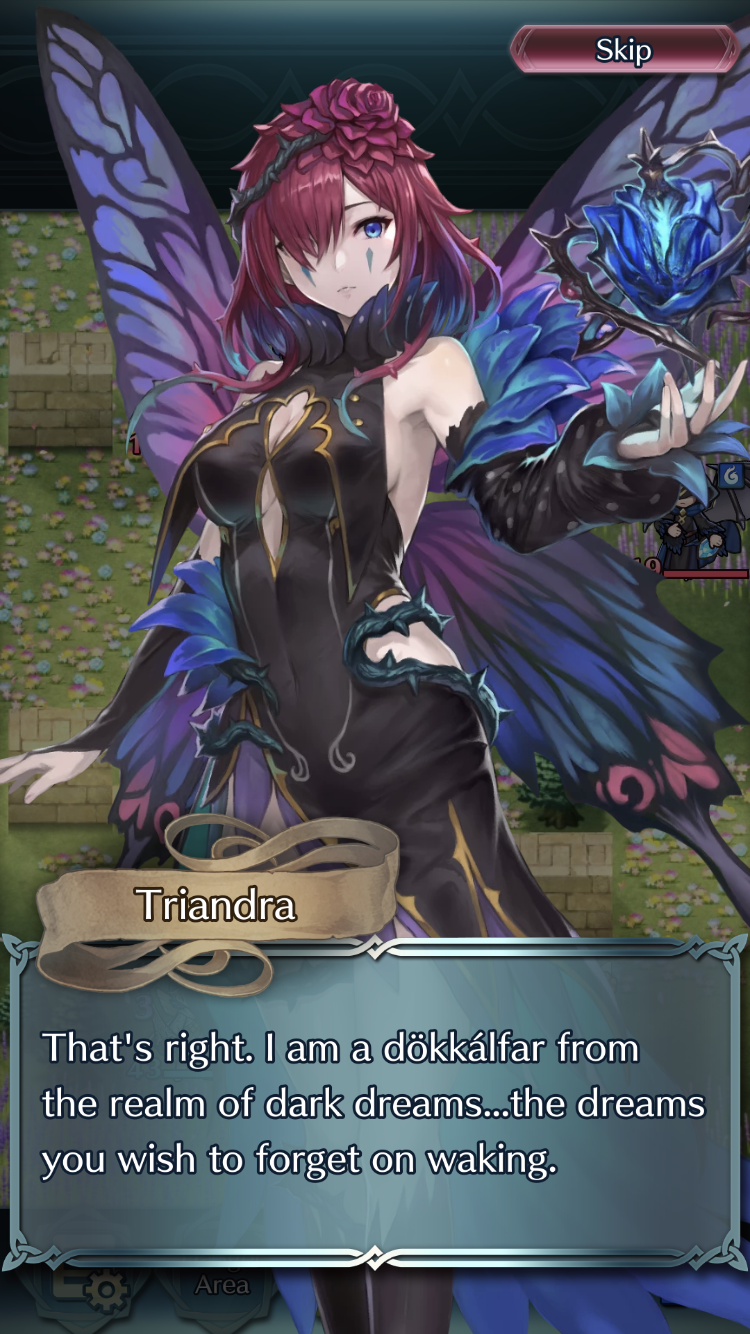 Upon their approach, Alfonse and the others quickly succumb to an unbearable drowsiness. In their half-conscious state, they are approached by Peony, a radiant light elf with the ability to conjure pleasant dreams.