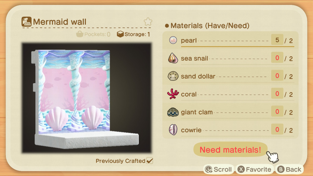 With the Summer Update now available for Animal Crossing: New Horizons, there is a new theme of DIY Recipes to collect. The Mermaid DIY Recipes are given to you by Pascal the Otter. He will give you a recipe once a day, should you let him keep a Scallop that you have found. To craft the recipes you will need shells that can be found on the peach and one important material… Pearls.
