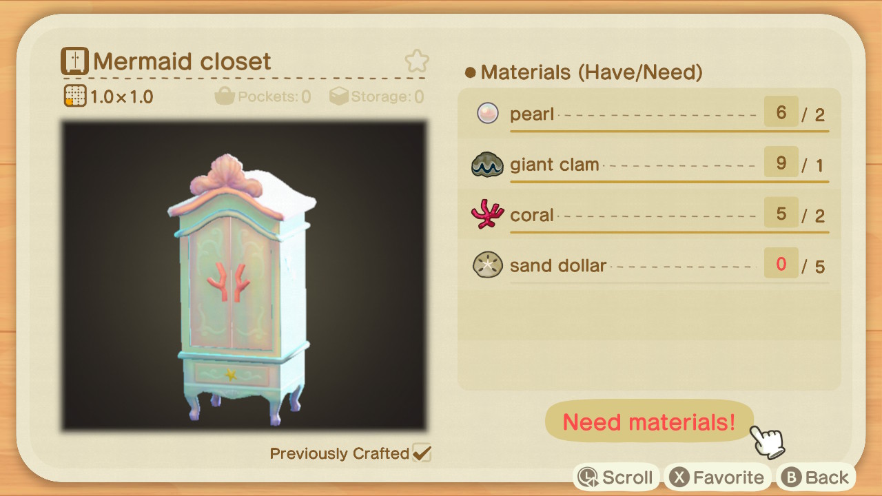 Mermaid Closet – 2x Pearl, 1 Giant Clam, 2x Coral, 5x Sand Dollar