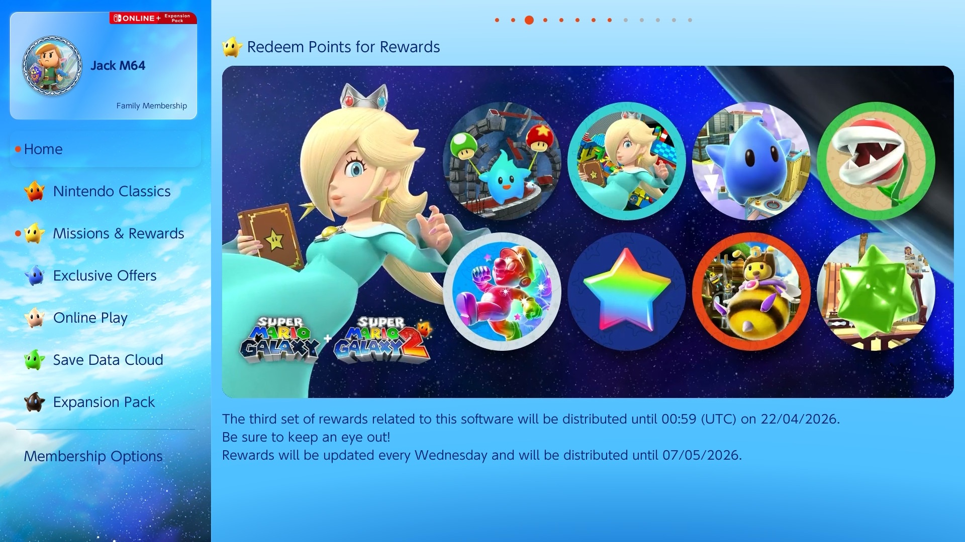 As of April 15, 2026, the sixth wave of Super Mario Galaxy 1 + Super Mario Galaxy 2 icons is available now with Nintendo Switch Online. The icons will only be available until April 22, 2025, at 00:59 UTC, with wave 6 consisting of the following icons: